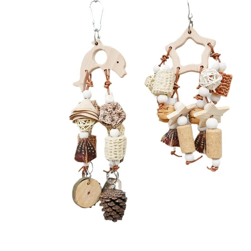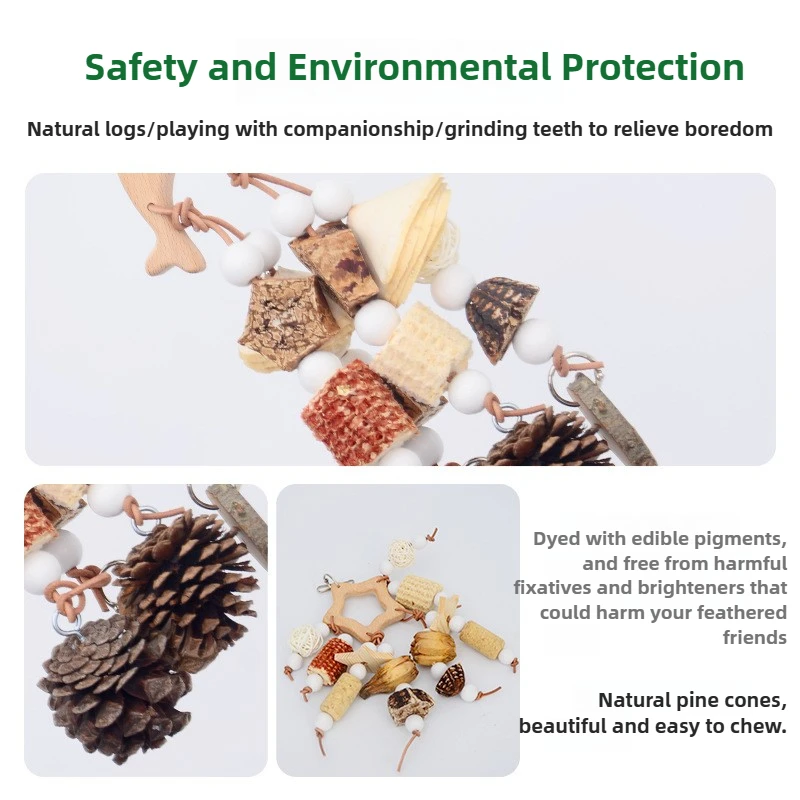 Delight your feathered friend with this natural wooden nibble skewer toy, designed to satisfy their instinct to chew and explore. Featuring a mix of pine cones, corncob pieces, cork, and wooden elements, it offers a variety of textures that keep birds engaged and entertained. These natural materials are perfect for promoting healthy beak maintenance through safe and satisfying chewing. The skewer design makes it easy to hang inside any bird cage, creating an interactive and stimulating environment. Ideal for parrots and other small to medium-sized birds, it helps reduce boredom and encourages active play. Each component is crafted from bird-safe materials, ensuring peace of mind for pet owners. The rustic, natural look adds a charming touch to your bird’s habitat. Whether used for nibbling, climbing, or exploring, it supports both physical and mental well-being. A must-have accessory for enriching your bird’s daily life.